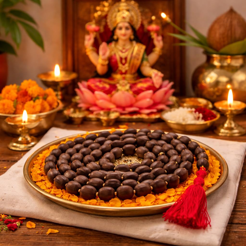 Kamal Gatta Lakshmi Mala (108 beads), original lotus seed, hand-knotted for wealth, prosperity & Lakshmi puja.