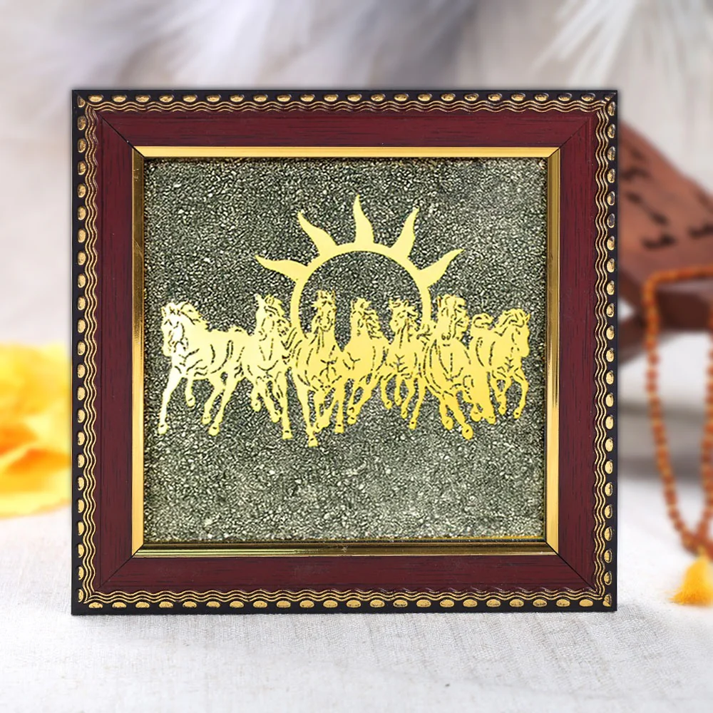 7 Horses Pyrite Frame for Wealth & Success