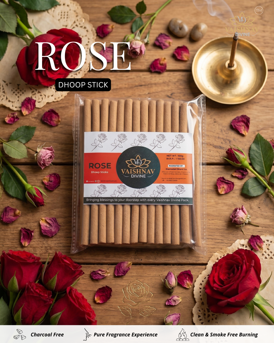 Fill your home with the soothing and uplifting aroma of Vaishnav Divine – Rose Dhoop Stick, infused with the essence of Gulab (Rose). Known for its calming and mood-enhancing properties, rose fragrance creates a peaceful and spiritually uplifting environment for daily pooja and meditation.